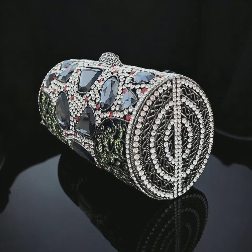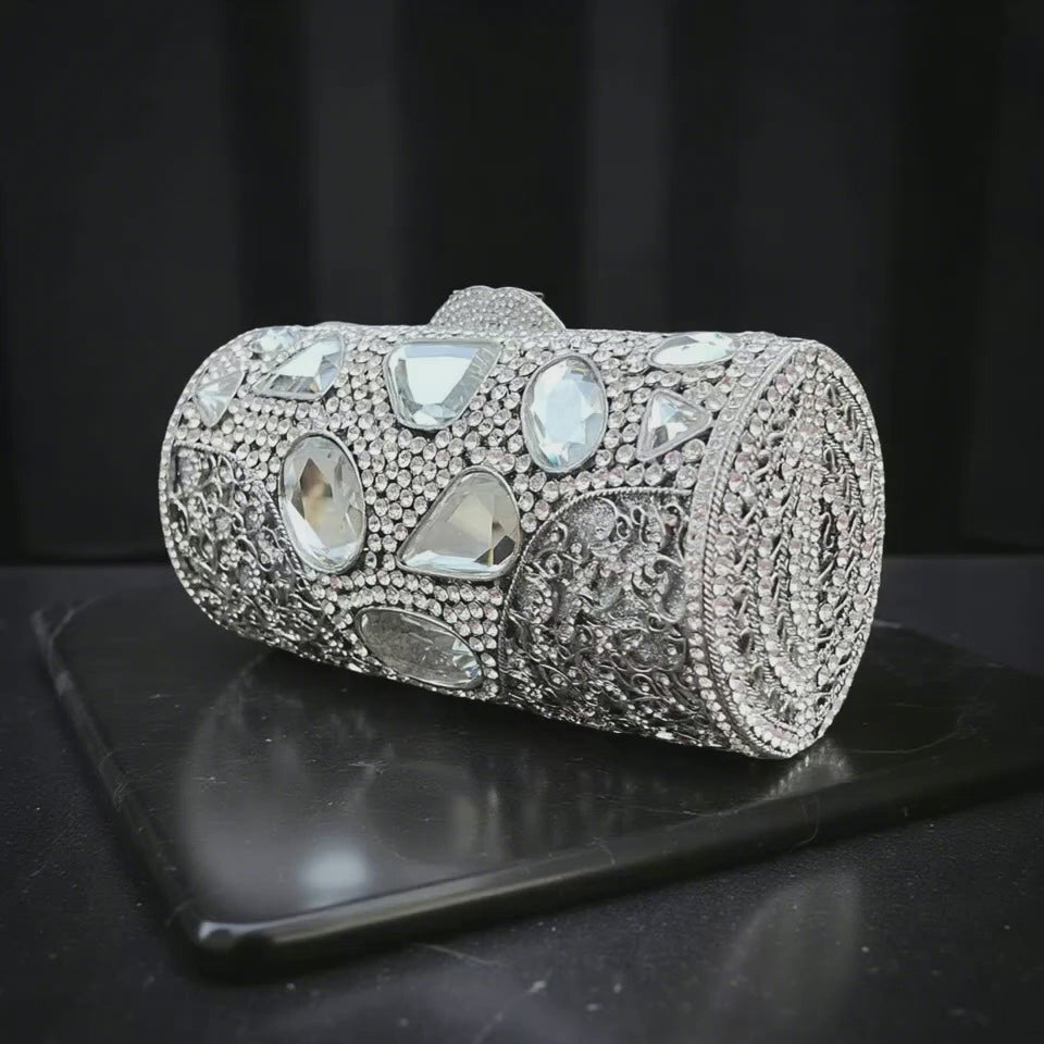 Santiago Structured Clutch Party Purse with Stones in Silver