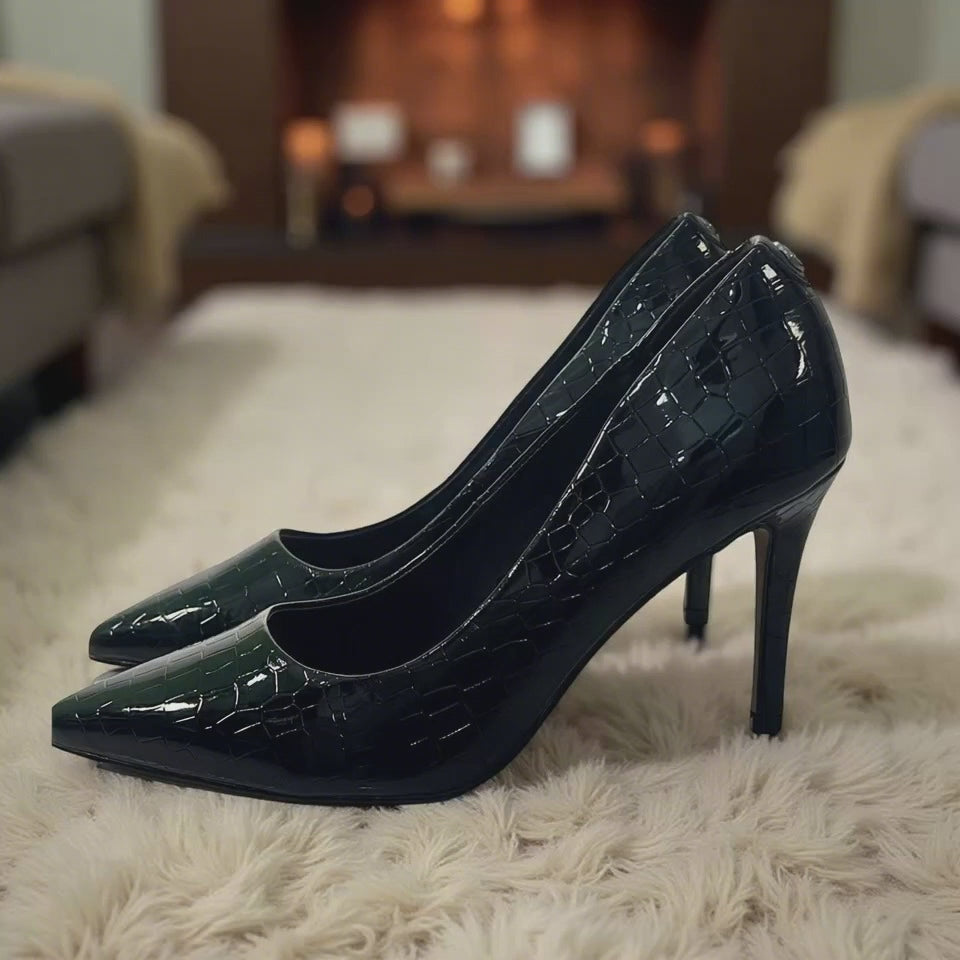 Ninewest Faux Croc Patent Leather Pointed Toe Pump in Black